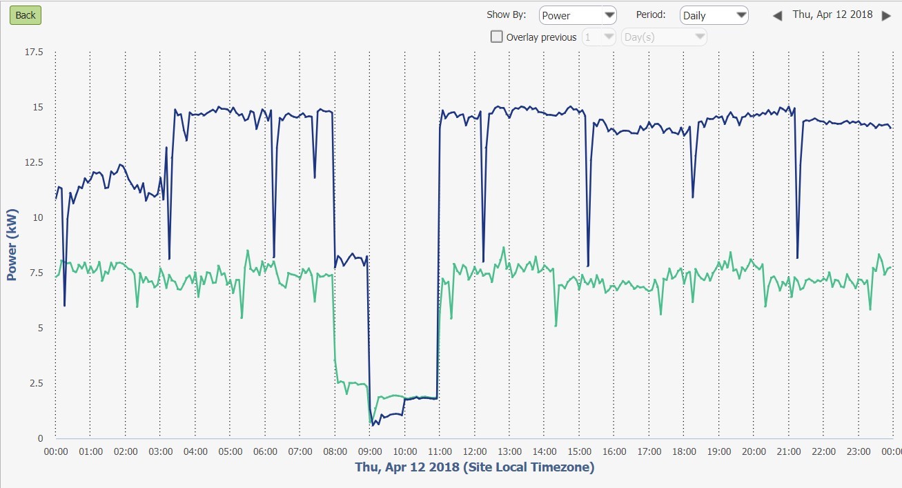 Кроме основных задач, которые система решила (раздельный учет электроэнергии, нормирование расходов электроэнергии на единицу оборудования и контроль потребляемой мощности предприятием), удалось выявить следующие моменты: