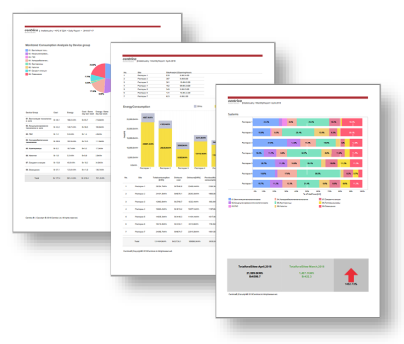 Облачное ПО имеет большое количество встроенных отчетов, которые помогают автоматизировать обработку всех данных. Кроме того, наши специалисты получили запрос на разработку индивидуальных отчетов, которое должны были содержать необходимые данные в удобном для клиента виде. Совместно со специалистами инновационного центра Сколково мы разработали проекты отчетов, которые были подготовлены и встроены в личный кабинет. В итоге, с учетом всех пожеланий и потребностей клиента, для руководителей и технических специалистов разного уровня были разработаны и настроены ежемесячные автоматические отчеты.