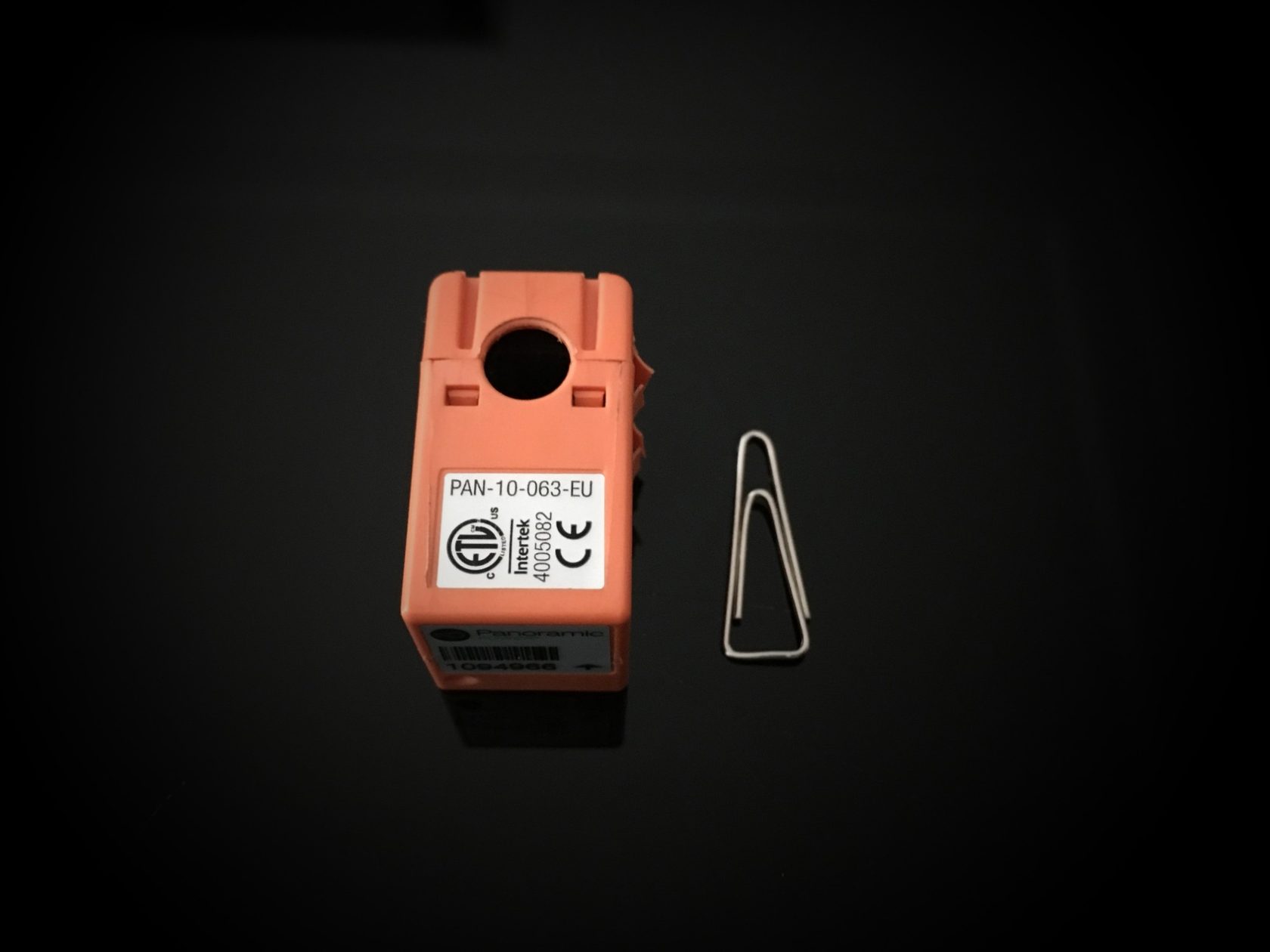 Рис. 1 – Размер самого маленького датчика серии PAN в сравнении со скрепкой